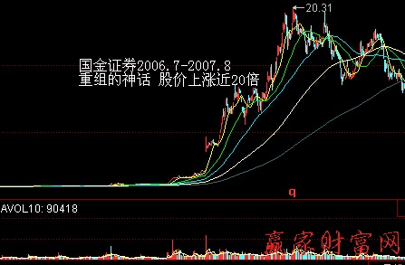 借殼重組,使得大量“灰姑娘”搖身一變成為“貴婦人”,股價(jià)也“雞犬升天”。比如剛剛說過的2010年十大牛股的第一牛股廣發(fā)證券便是通過借殼S延邊路實(shí)現(xiàn)上市的,再如瓊民源(000931 )搖身一變成為科技股中關(guān)村,成都建投(600109)搖身一變成為國金證券(如上圖)、養(yǎng)雞公司草源興發(fā)(000780)搖身一變成為煤炭股平莊能源……而在這一系列令人眼花繚亂的資本運(yùn)作案例中,伴隨著的便是股價(jià)的瘋狂上漲。