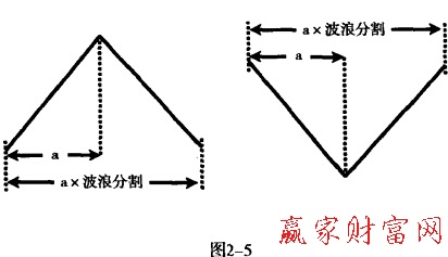 第一,一段趨勢運行的時間乘以波浪分割將會是其后相反趨勢結束的時間。(圖2一5)