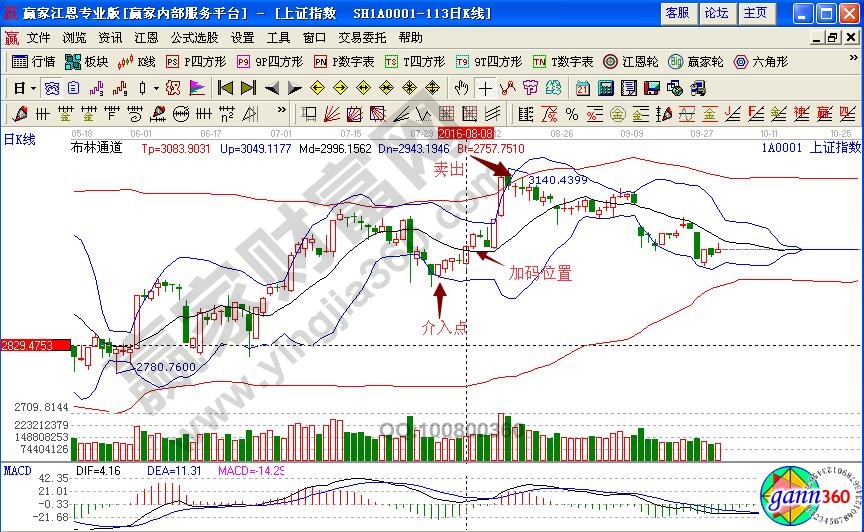 (5)日線圖走勢中,如果價格逐步上移到布林帶上軌并行走在上軌的實話,可以依據其他的技術指標進行分析。
