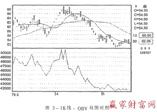 (5) OBV值的累積數(shù)由正值轉(zhuǎn)換為負(fù)值的時候,為下跌趨勢,持股應(yīng)出脫。反之,OBV從負(fù)的累積數(shù)據(jù)轉(zhuǎn)為正數(shù),則應(yīng)該買進(jìn)股票。