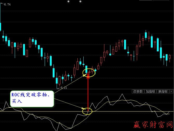 ① 當(dāng)ROC線突破零軸時(shí)買入