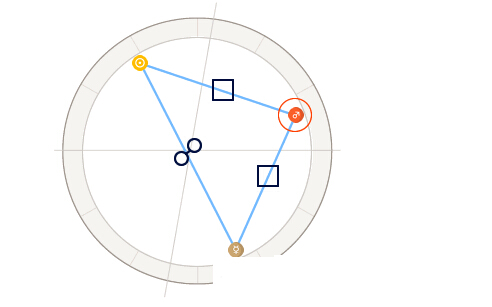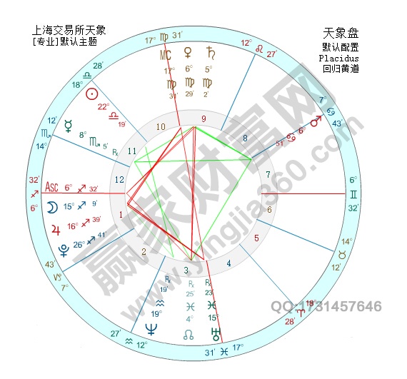 3,大三角:大三角是由三顆星,兩兩形成120度所構成的格局,當形成大三角時,三顆星會同屬火、土、風、水四象中的一象。由于行星能量想通,能夠交互作用產生良性的循環,因此能夠非常順利的流動、生生不息。大三角也就是我國命理學所說的三方會照格局,這是所有格局中第一吉利的格局。金融占星上自然也是吉,需要注意是大三角的種類 以及對應股市的板塊。