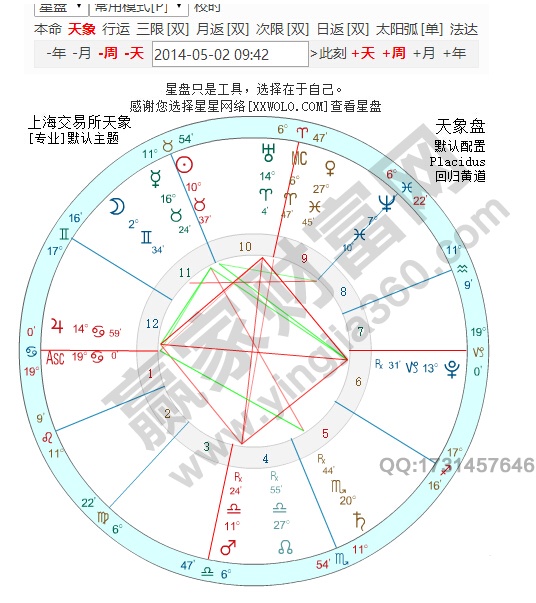 例子 :2014年4月大十字星象,行情一直在頂部,當大十字結束 行情開始木星入獅子 股市爆升。