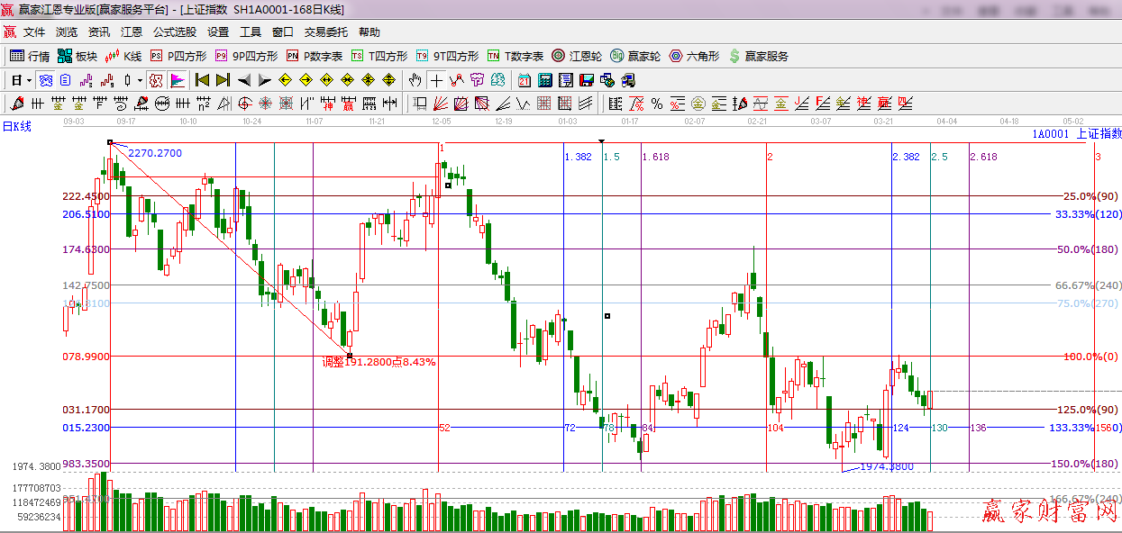 綜上所述:依據贏家江恩技術工具分析得出,大盤在江恩90度支撐2031附近附近短線止跌反彈,不過目前整體的量能不足以支持大盤繼續反彈,所以短期以維持震蕩走勢為主,周三謹防沖高回落動作,后期關注量能的跟進情況,操作方面,倉位控制在3-5成,星級風險提示,謹慎看多