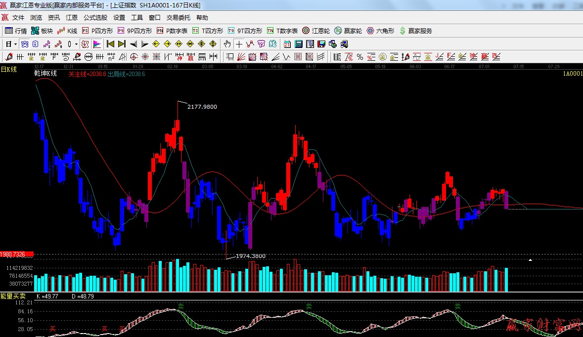 ★依據贏家江恩系統極反通道提示:一根中陰線跌至生命線,明天將考驗支撐,預計延續震蕩為主。
