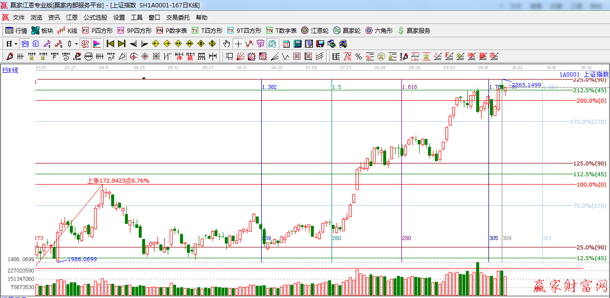 ☆依據贏家江恩系統黃金時間周期線提示:9月25日時間窗口,指數收十字星,短期謹慎為主。