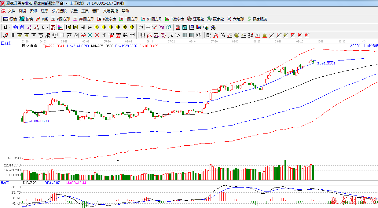 江恩看盤綜述:依據(jù)贏家江恩技術(shù)工具分析得出:今日指數(shù)圍繞外軌線震蕩,終盤以陰十字星報收,近期指數(shù)高位滯漲以及盤中震蕩加劇,而且macd有高位背離的走勢,,下周重點關(guān)注日線藍色外軌線的得失,此位置一旦破位,預計市場會出現(xiàn)幾天的日線級別調(diào)整,但以中線而言,短線的調(diào)整并不改變反彈趨勢,目前操作策略上做好倉位的調(diào)整保持3-5成左右。