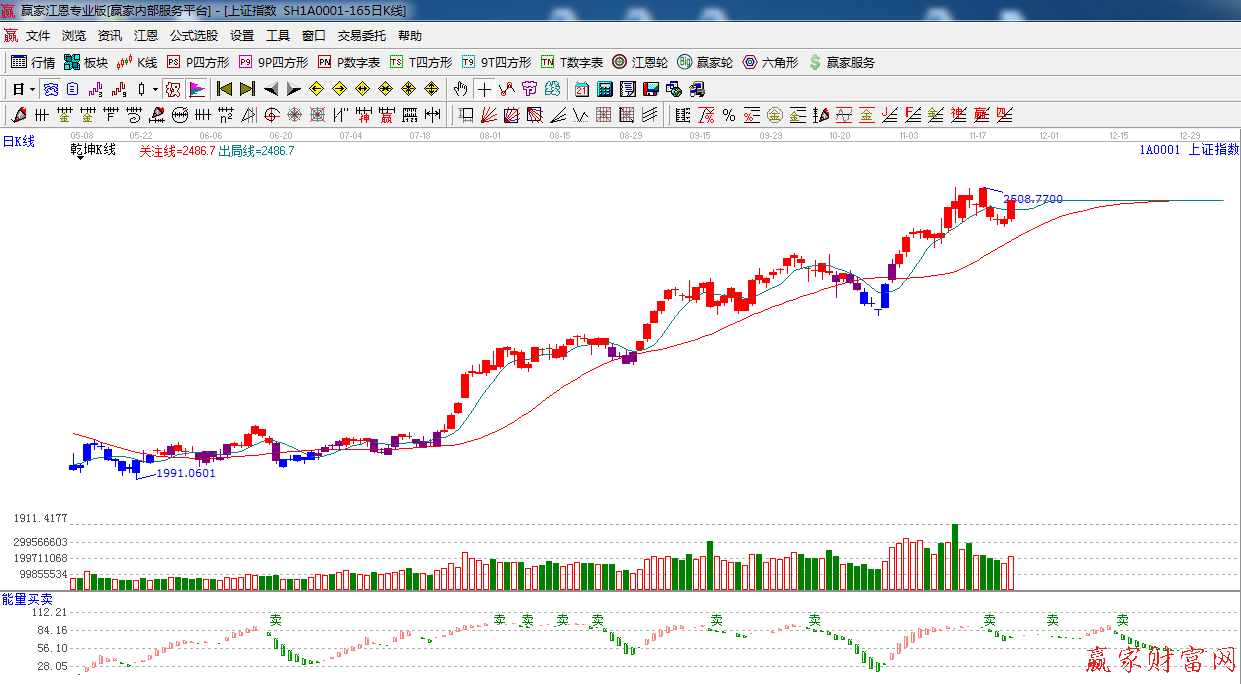 ★依據贏家江恩系統乾坤K線提示:紅色區域,k線重返短線出局線之上,短線看多。