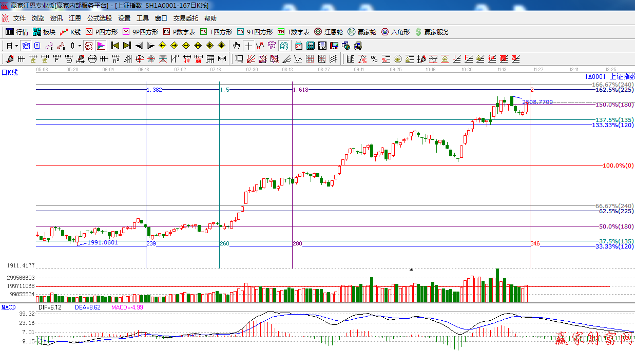 ☆依據贏家江恩系統黃金時間周期線提示:重點關注時間窗口是11月24日附近。