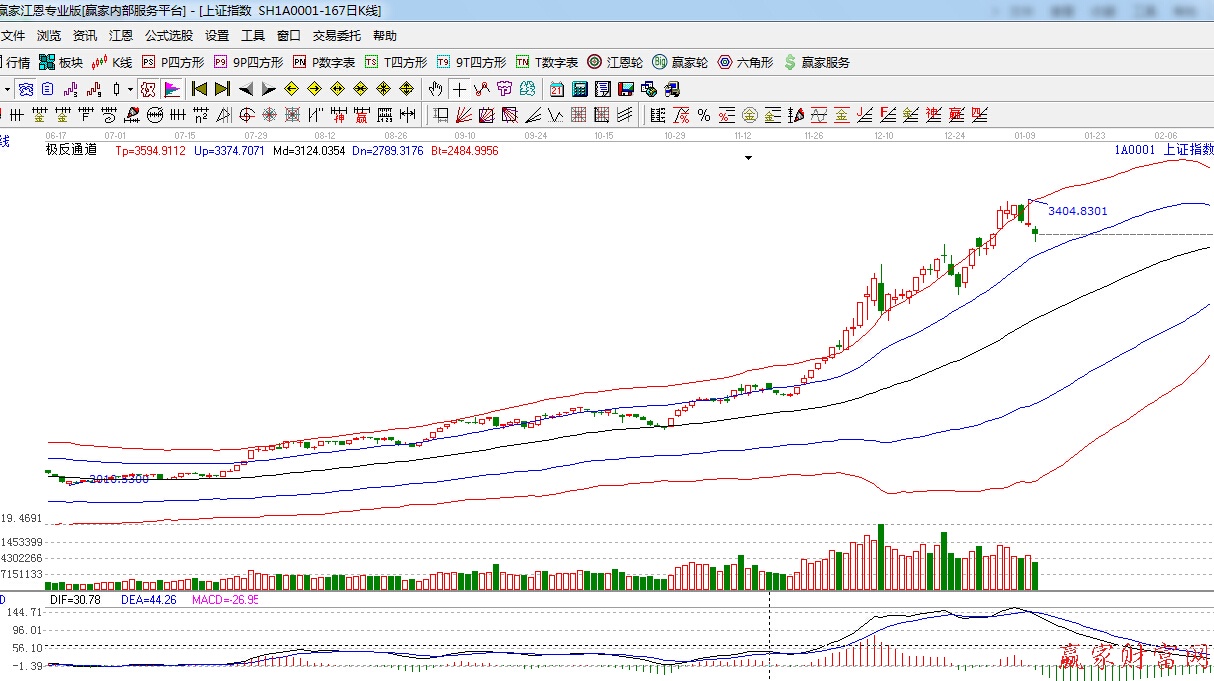 江恩看盤綜述:依據(jù)贏家江恩技術(shù)工具分析得出:今日滬深兩市表現(xiàn)疲弱,滬指低開下探江恩90度3188點支撐,隨后維持低位震蕩,金融股嚴重分化,題材股活躍,江恩90度支撐3188點,此位置不破,短期高位震蕩格局有望延續(xù)。但整體大勢依舊向好,操作上,合理控制倉位,繼續(xù)關(guān)注國企改革、一帶一路等近期熱點,另外,傳媒、軍工等題財股也可適關(guān)注。
