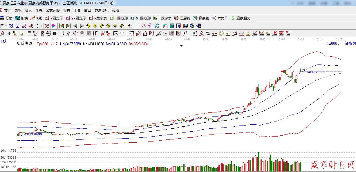 極反通道提示:滬指繼續(xù)圍繞在極反通道藍色外軌線上方震蕩整理,外軌線支撐3303點,此位置不破,看多。