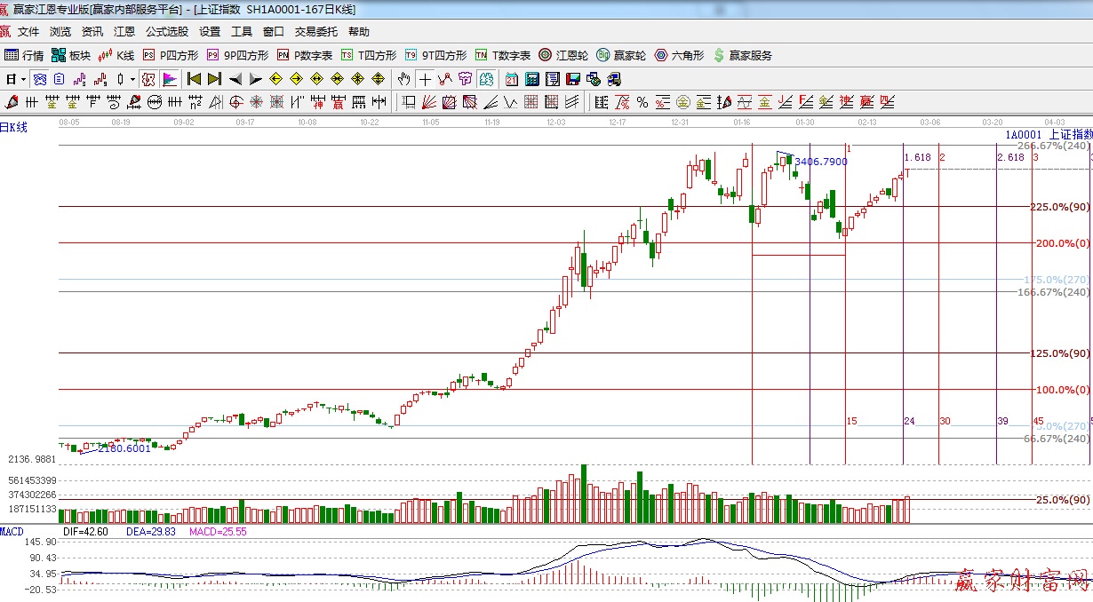 ★依據贏家江恩理論系統極反通道提示:周一滬指圍繞短周期30,60分外軌線震蕩附近,短線謹慎。