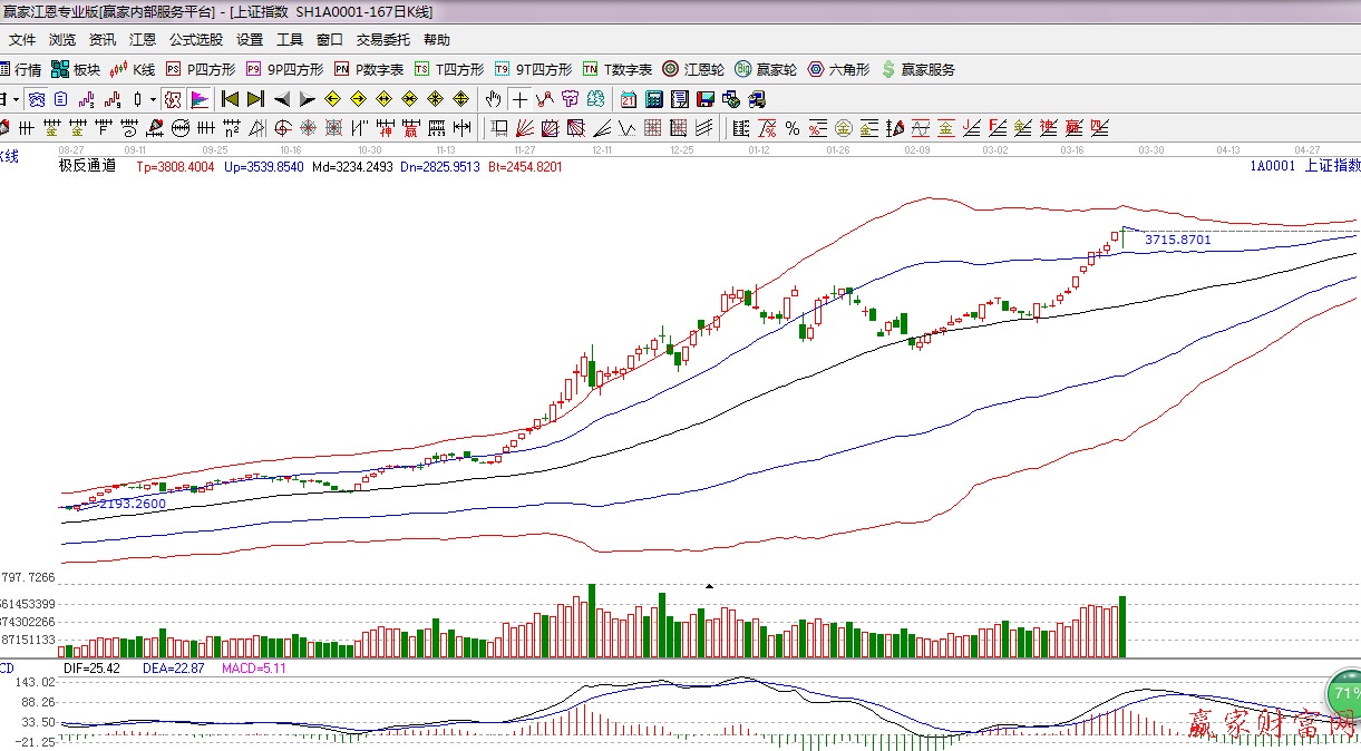 江恩看盤綜述:依據贏家江恩技術工具分析得出:今日早盤股指窄幅震蕩盤中跳水60點,回踩江恩極反通道藍色外軌線,隨后震蕩反彈并翻紅,終盤放量十字星報收,市場有其自身的運行規律,罕見9連陽之后,短線震蕩調整不可避免,滬指的巨震,主力資金暴力洗盤的概率很大,但今日放量收星對于后期也需留一份謹慎,下一時間窗是3月30日。操作上,逢低關注國資改革、年報超預期個股,對于短線急漲的個股要控制好倉位。