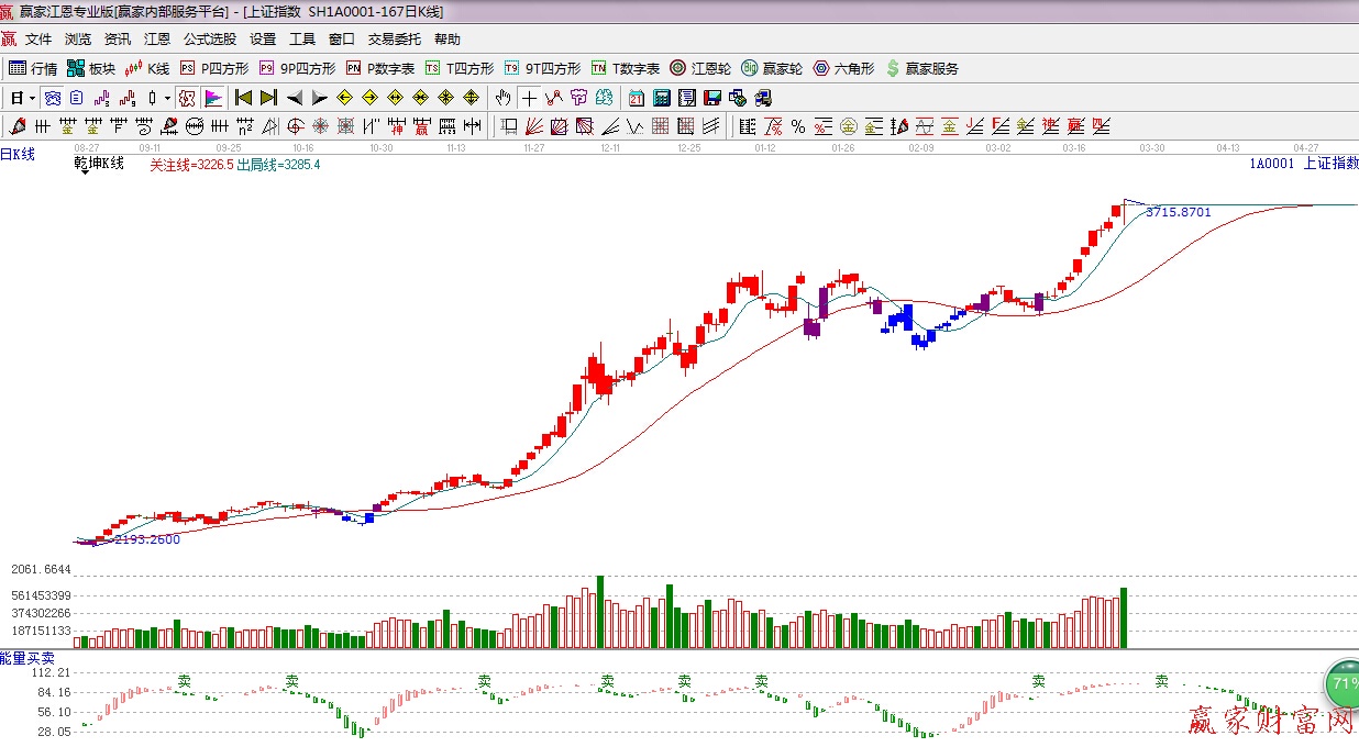 ☆依據贏家江恩理論系統能量買賣提示:紅色能量柱看多,但與前期呈現小幅背離走勢,謹慎看多。