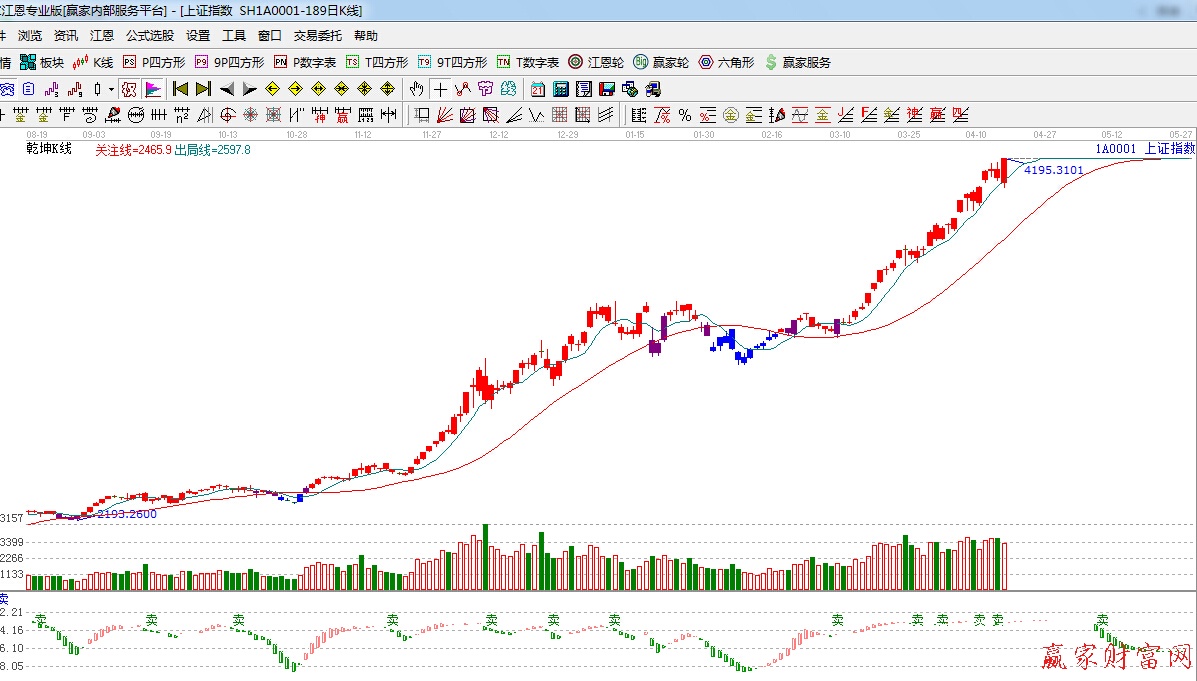 ★依據贏家江恩理論系統乾坤K線提示:紅色可操作區域,綠色線上方,綠色線不破,繼續看多。