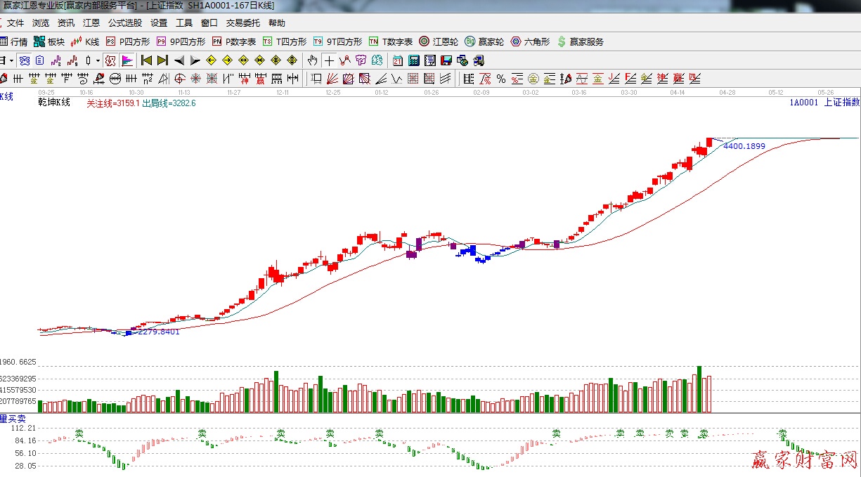 ☆依據贏家江恩理論系統能量買賣提示:有“賣”字出現,指標鈍化,謹慎看多。