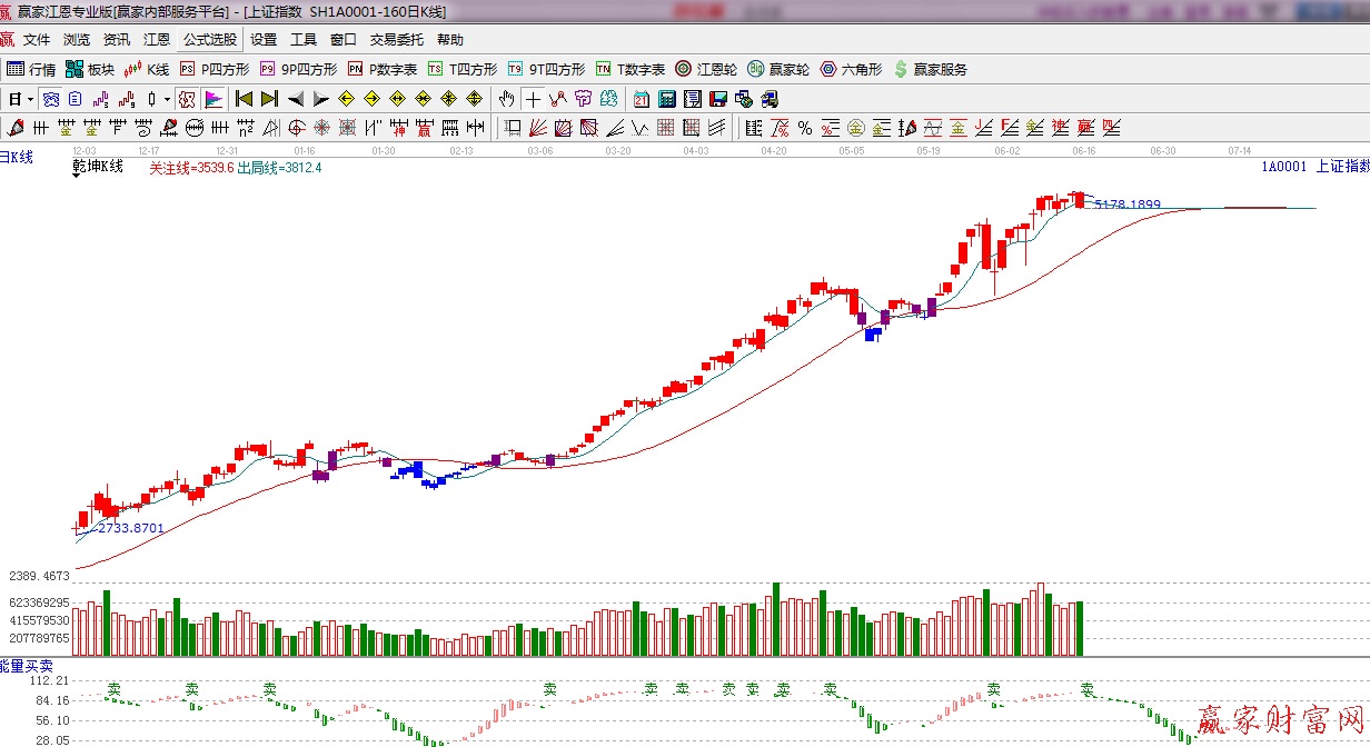 ☆依據贏家江恩理論系統能量買賣提示:紅色量柱較前期有背離,有“賣”字出現,謹慎看多。