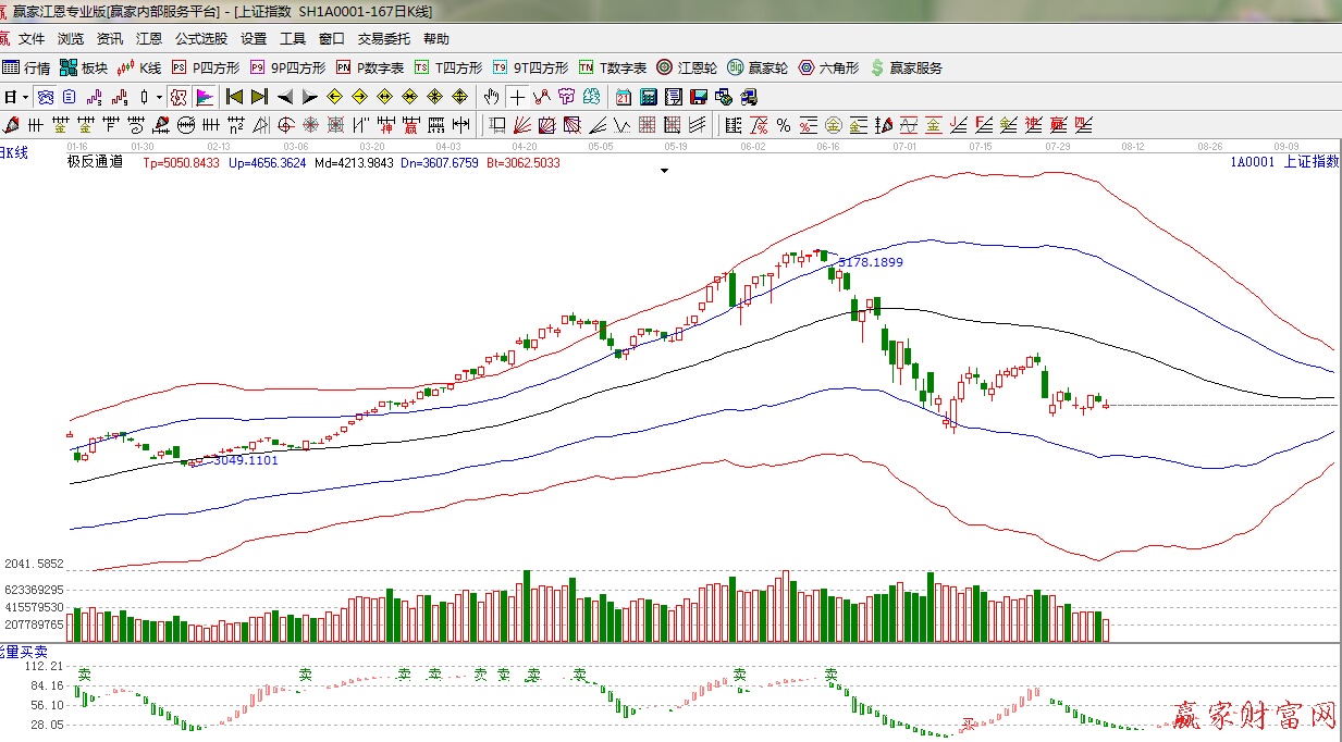 江恩看盤綜述:依據贏家江恩技術工具分析得出:周四早盤A股延續前日下跌走勢,大幅低開一度逼近3600點,在新能源汽車全產業鏈等板塊帶動下,強勢反彈,尾盤煤炭股啟動,遏制了大盤的進一步回落??傮w看,市場底部尚未夯實。3600點是一個關鍵點位。此位置整理不破,滬指有望迎來反彈,時間窗口10日左右(周六是立秋),操作上,可以盤中逢跌買入年內漲幅落后的資源股,對于國資改革和軍工板塊中漲幅過大品種要適當的減少。