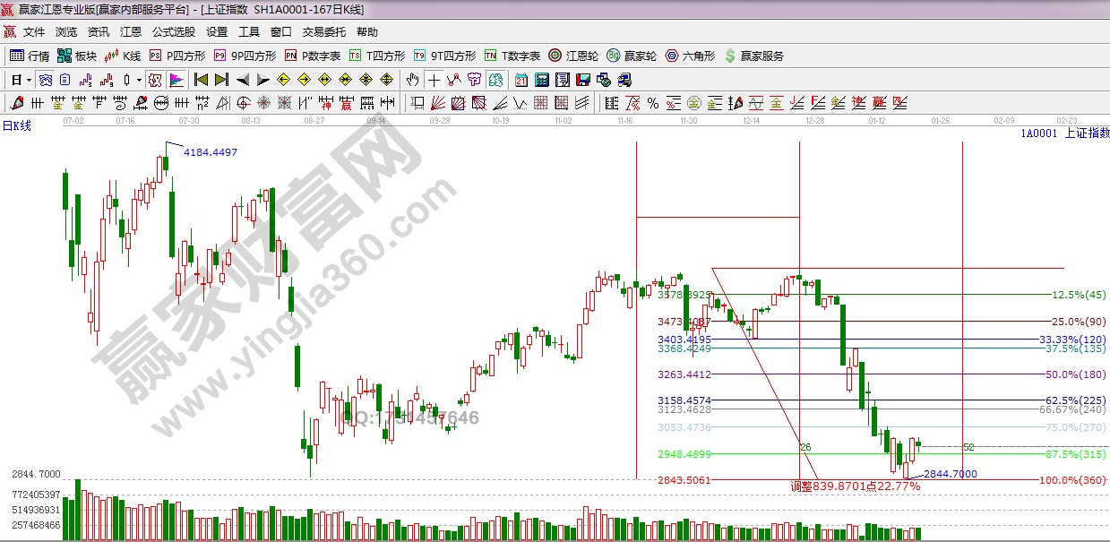 ☆  依據贏家江恩理論系統江恩波段百分比線提示:上方阻力位江恩270度3054點,225度3159點,支撐位置江恩45度2949點。2930點。
