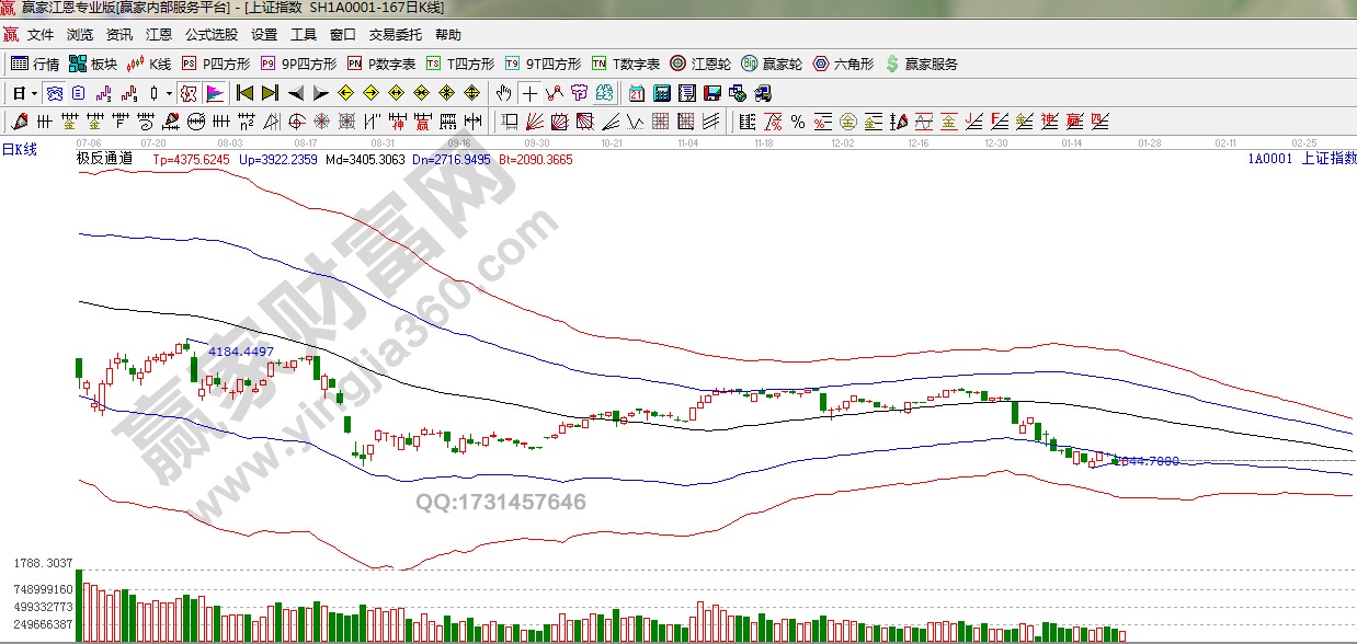 ☆ 依據贏家江恩理論系統極反通道提示:大盤在極反通道弱勢超跌區域,震蕩拉鋸。