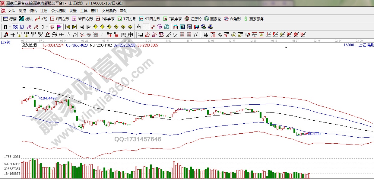☆ 依據贏家江恩理論系統極反通道提示:滬指在極反通道弱勢超跌區域,物極必反 看多。