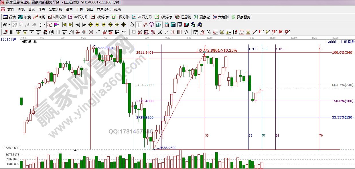 ☆依據(jù)贏家江恩理論系統(tǒng)極反通道提示:滬指低開在60分生命線之下,2775點附近止跌回升,60分生命線2819點,下周一留意此位置,日線生命線是2932點。