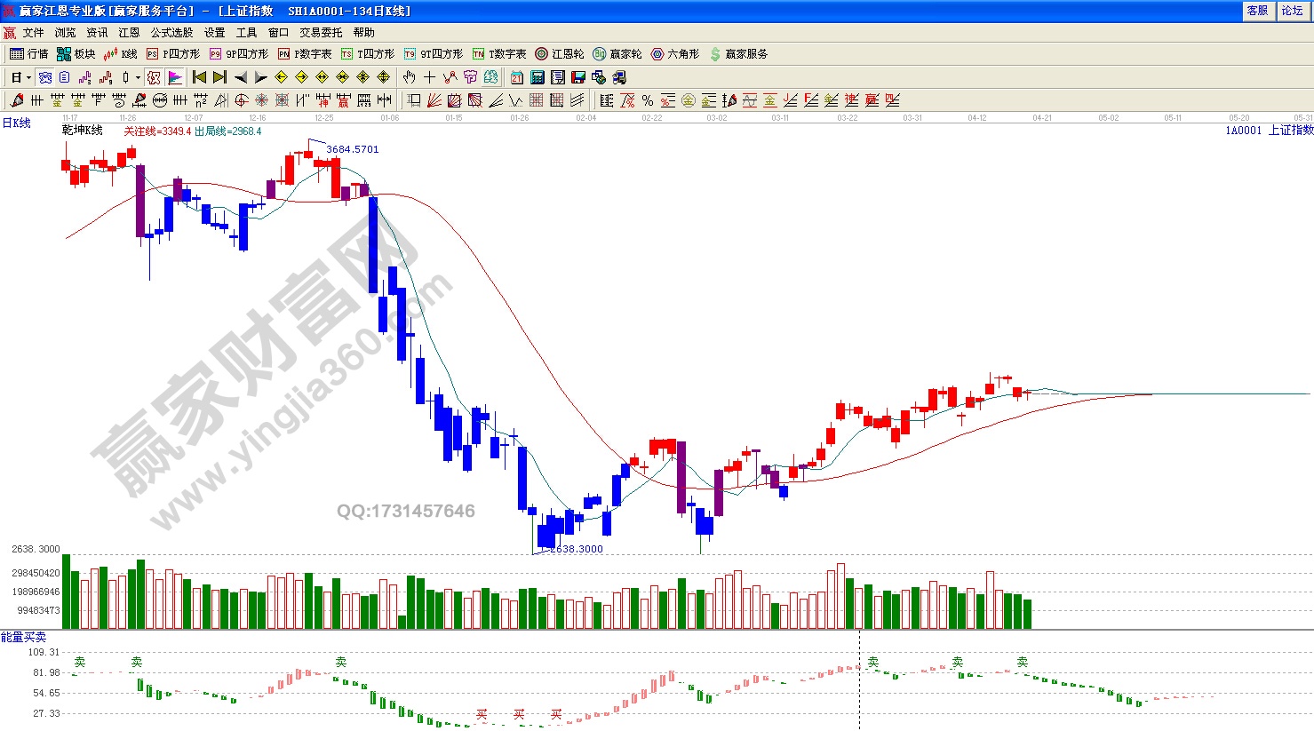 ☆  依據贏家江恩理論系統能量買賣提示:紅色能量柱縮短,并有“賣”字出現適當謹慎。
