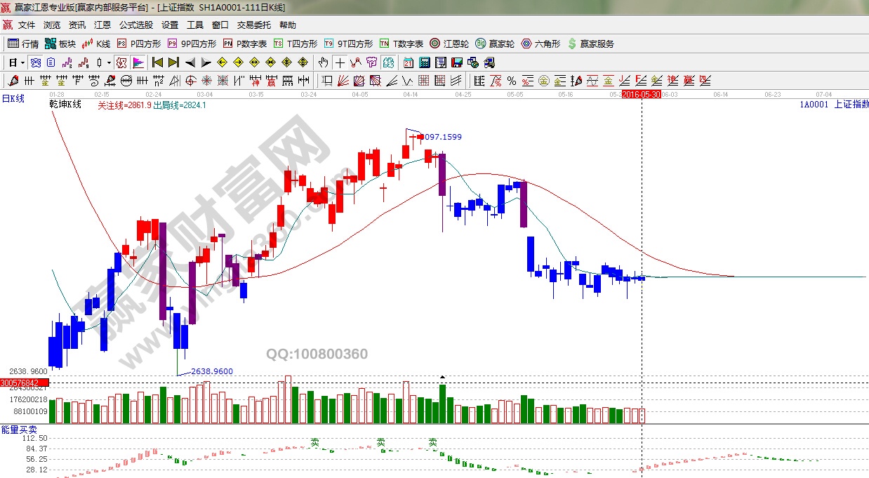 江恩看盤綜述:依據贏家江恩技術工具分析得出:周二,5月31日是大盤的下一個時間窗口,價格上,大盤明日關鍵點依然是2830點,此位置如能放量收復,向上趨勢才能打開,如不能有效突破,謹防主力被迫再次挖坑,操作上,在方向未明確前,繼續控制倉位,同時耐心等待抄底良機。