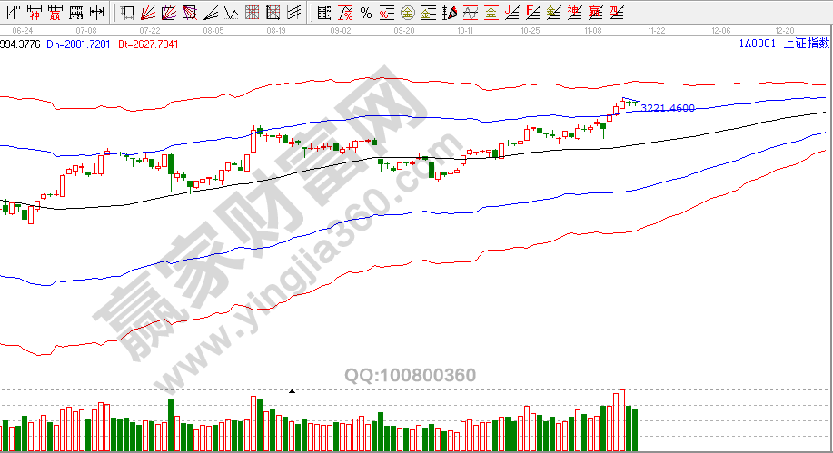 ★依據(jù)贏家江恩理論系統(tǒng)乾坤K線提示:紅色區(qū)域,短線出局線之上,看多。
