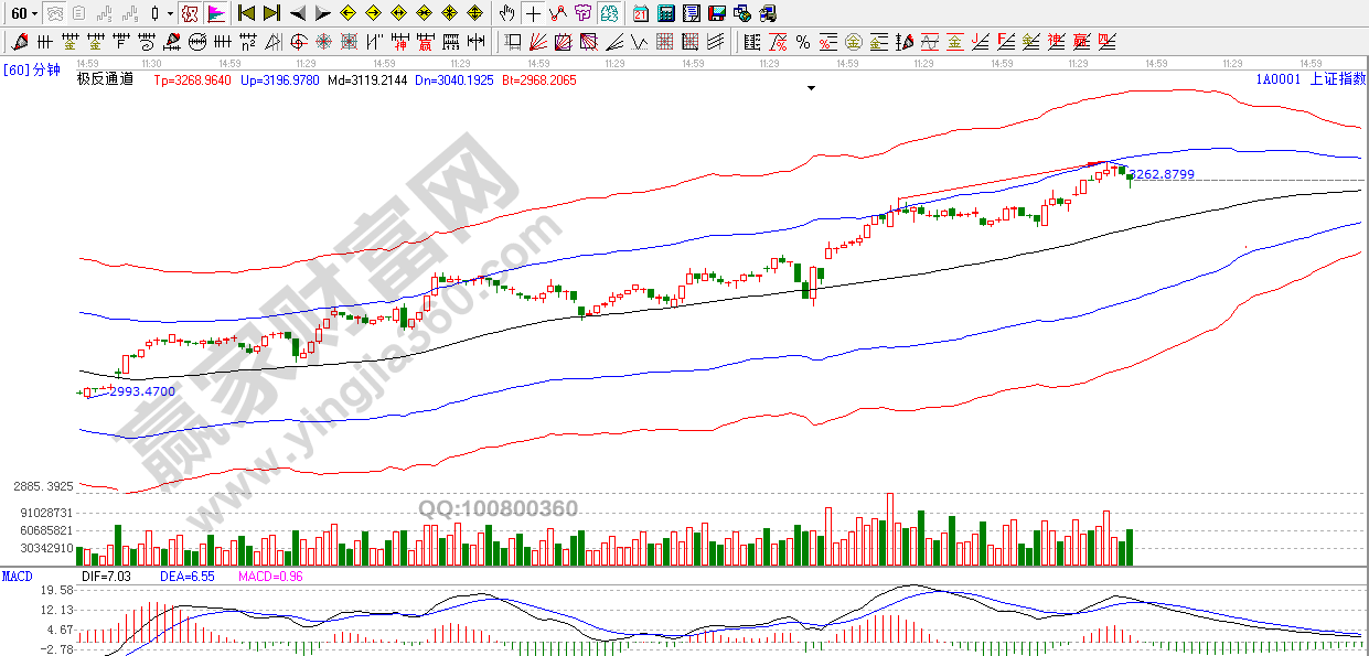 ★依據(jù)贏家江恩理論系統(tǒng)極反通道提示:滬指沿60分藍(lán)色上軌線震蕩上行,量能不濟(jì),如期展開調(diào)整,60份周期有調(diào)整需求,預(yù)計下方支撐生命線3200點(diǎn)附近。