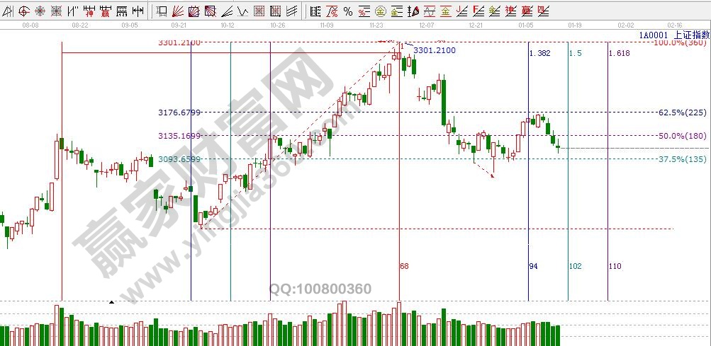 ☆依據贏家江恩理論系統黃金時間周期線提示:1月5日窗口后滬指展開回落。下一時間窗口1月17日左右,1月24日左右。