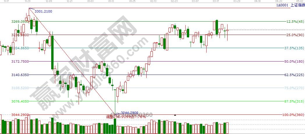☆依據(jù)贏家江恩理論系統(tǒng)江恩波段百分比線提示:周四,滬指盤中再次破位3236點(diǎn),短線支撐依然關(guān)注3236點(diǎn),3204點(diǎn),上方面臨日線45度線3269點(diǎn)。