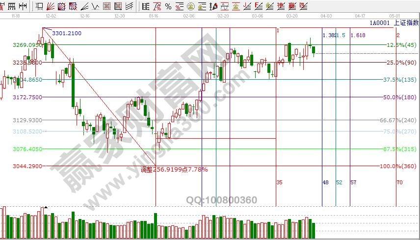 ☆依據贏家江恩理論系統江恩波段百分比線提示:滬指在3250點整理,此位置不有效跌破,繼續上攻3269點。3300點。支撐依然是3250點,3236點。