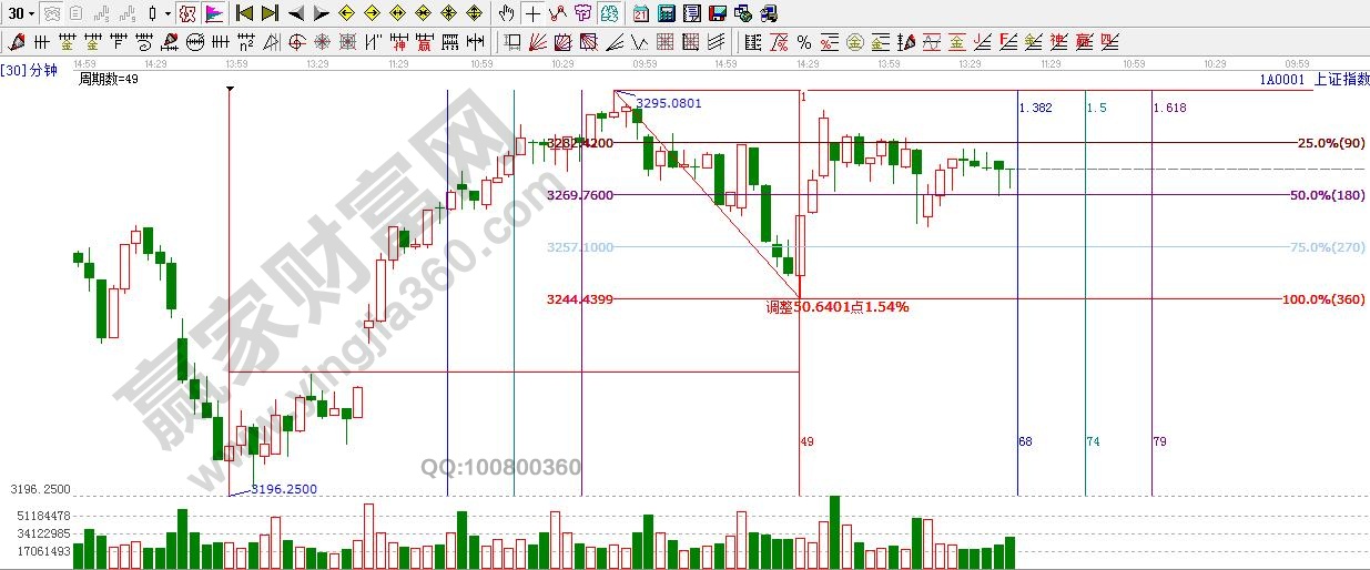 ★依據贏家江恩理論系統江恩波段百分比線提示:周四,滬指圍繞3270上下震蕩整理,下方支撐短周期依然是3270,3255點附近,上方阻力是3306點附近。