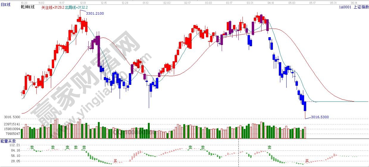 ☆依據贏家江恩理論系統乾坤K線提示:紅色關注線之下,藍色休息區。依據規則:控制倉位,多看少動。
