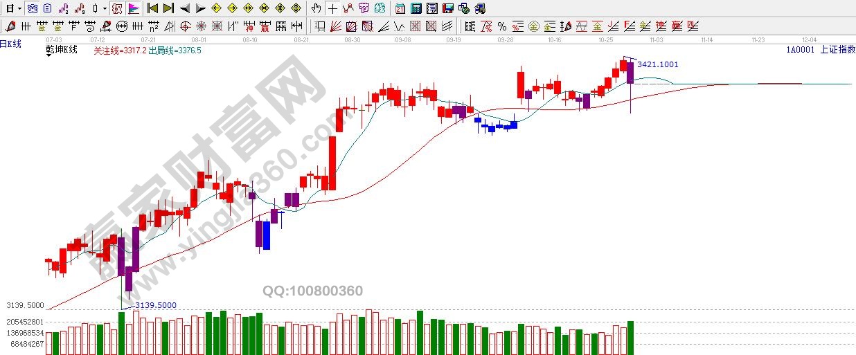 ★依據贏家江恩理論系統乾坤K線提示:回踩關注線,出現紫色k線,短線保持謹慎。