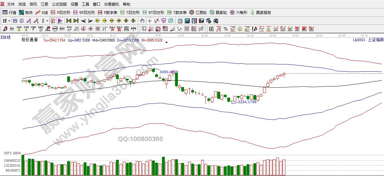 ☆依據贏家江恩理論系統極反通道提示:周三,滬指在藍色外軌線震蕩整理,盤中沖高回落,回踩3400點再次回升,支撐3400點,日線生命線3350點附近,依據規則,日線生命線之上,中期趨勢向上為主。
