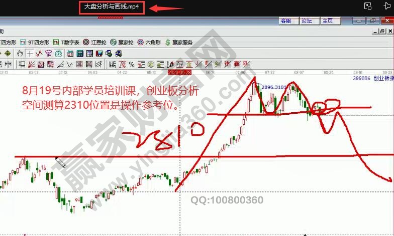 如圖2,8月19號正式學員內部培訓課,講解創業板未來操作參考空間是2310附近;