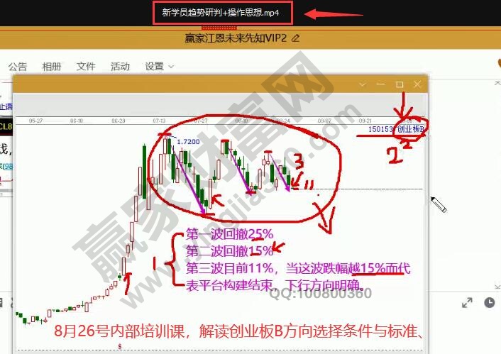 如圖3,8月26號正式學員內部培訓課繼續講解創業板B、創業板、滬指的分析方法及判斷條件與方向。