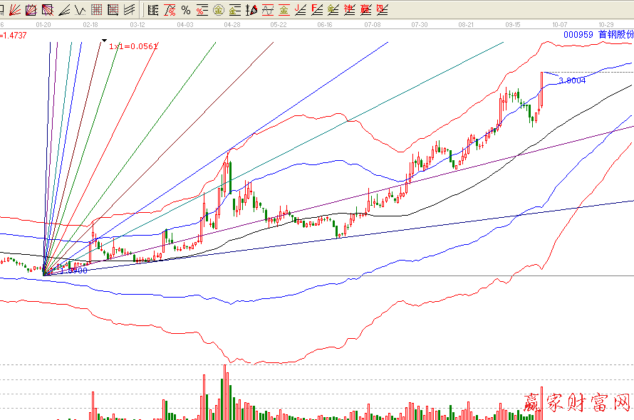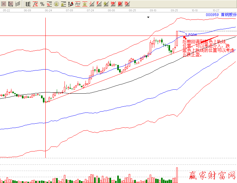 后勢(shì)判研:該股近期調(diào)整較為充分,股價(jià)在30日均線獲得支撐,今日強(qiáng)勢(shì)漲停,突破江恩軟件極反通道藍(lán)色上軌線,走勢(shì)轉(zhuǎn)強(qiáng)。該股目前股價(jià)不到4元,目前又處于歷史底部區(qū)域,可以中長(zhǎng)線持有。資金面上,今日主力資金大幅涌入拉升股價(jià)。技術(shù)面上,今日成功突破近期反彈高位,上漲趨勢(shì)形成,短期有望延續(xù)強(qiáng)勢(shì)。后勢(shì)如遇回調(diào)到藍(lán)色上軌線止跌,短線可以考慮介入,如果跌破藍(lán)色上軌線就要注意風(fēng)險(xiǎn)了,做好止盈止損的準(zhǔn)備。后市需要密切關(guān)注主力動(dòng)向,主力已經(jīng)介入開始拉升,一旦發(fā)現(xiàn)主力大幅出逃,說(shuō)明主力開始出貨,就要果斷止盈。