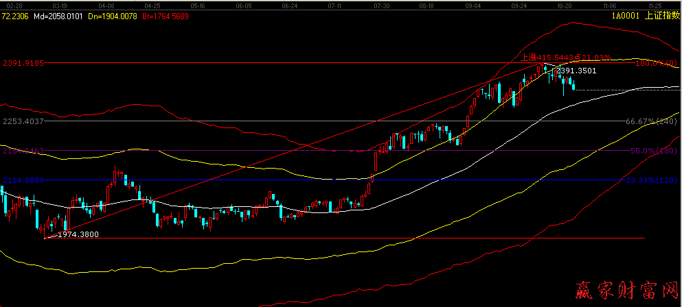 技術(shù)分析:依據(jù)贏家江恩系統(tǒng)極反通道提示,大盤(pán)目前在極反通道生命線和黃色上軌線之間運(yùn)行,均線看大盤(pán)今日已經(jīng)跌破30線,短期看空,后市支撐點(diǎn)2290點(diǎn)附近。