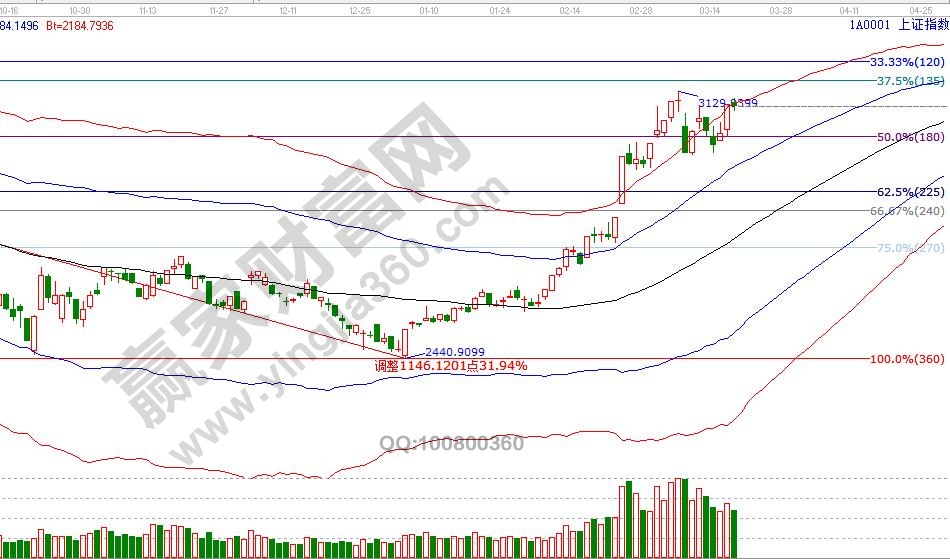 大盤日K線圍繞極反通道紅色外軌線3098點震蕩,趨勢延續關注60分鐘生命線3040位置,在趨勢沒有轉變之前,繼續持有一定比例的股票,遵守工具規則不做主觀判斷;空間點位上,江恩輪中輪顯示,四方形90度3051點不破市場延續上攻,3130-3150為反壓區,20號是短周期時間窗口,26號為日線時間窗口。操作策略,圍繞紅線震蕩期間,指數不破江恩輪中輪四方形3051點,短線延續做多,兌現持續上攻遇阻品種,切換至生命線附近滯漲股,倉位保持4成。