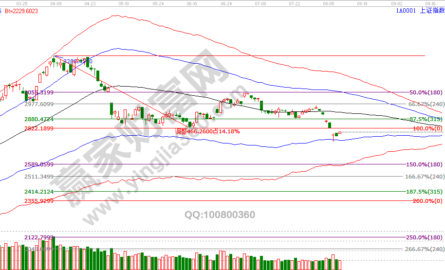 8號大盤高開最高上攻至提示的反壓位2800點受阻(最高2799點相差1點)轉震蕩,另外一個市場信號上證50已回補5號缺口,以時價轉化路徑測算,目前價格在前時間在后,價格再度上攻后需要停下來等待時間這樣走勢才會和諧。維持6號大勢分析觀點,日線藍色下軌線2744點、5號缺口2822及波段百分比延伸線180度2834點是運行空間,靜態做好分析與策略,盤中只需關注好信號即可。8月9號盤中壓力是180度2800點、2808點,盤中支撐是90度2772點。操作策略,指數生命線下弱勢通道運行,到達藍色下軌線目標位,激進者按工具信號3成倉交易。