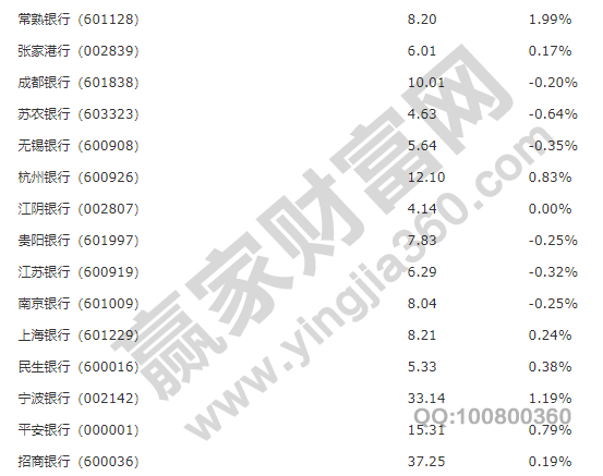 銀行股有很多,但是有影響力的卻沒幾個(gè),但是招行、平安銀行、上海銀行、南京銀行等,我們還是可以關(guān)注的,為什么?因?yàn)殂y行板塊不輕易動(dòng),一旦出現(xiàn)拉升現(xiàn)象,這幾個(gè)銀行股票將會(huì)出現(xiàn)漲幅現(xiàn)象。