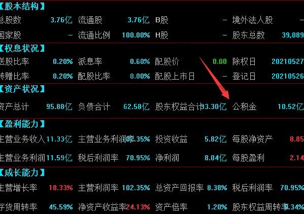 最后來說公積金就是凈資產的一個部分,凈資產的增加必須靠利潤或者發行新股。公積金的值其實就是歷年積累的利潤×10%加上新股發行溢價。公積金不能動,可以轉成股本,所以和股本差不多。每股公積金高意味著公司有高送轉的潛力。