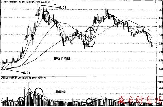 (1)當股價和成交量均突破各自的移動平均線時,表示該股進入強勢上升階段,這時投資者可以積極關注個股的動向。