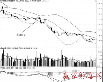 圖1為吉林敖東日K線圖。從圖中我們可以看出該股一直運(yùn)行在BOLL中軌和下軌之間,說(shuō)明市場(chǎng)非常弱勢(shì),當(dāng)股價(jià)每次反彈中軌就是清倉(cāng)的好時(shí)機(jī)。