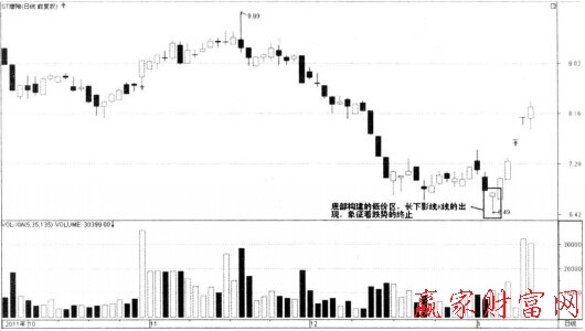 2.長下影線的出現意味著此段跌勢的結束,其準確性很高,因而對于投資者而言有很強的買入信號,其意味著在股價下跌過程中有很強的護盤力量對股價走勢進行撐托。