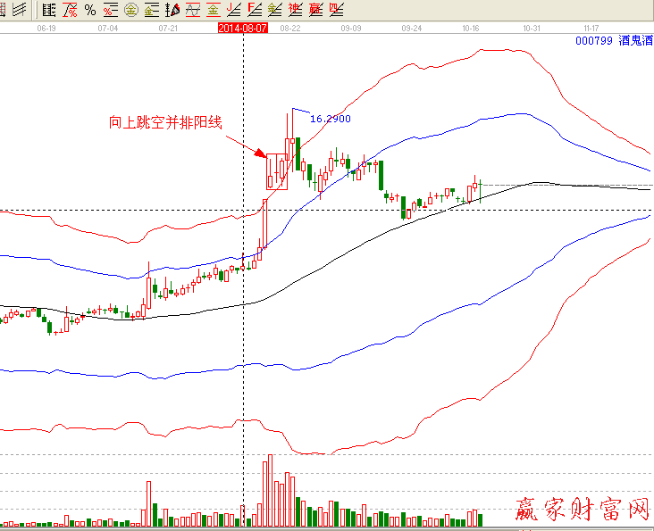 如上圖該股在漲停之后,出現向上跳空缺口,而且突破紅色上軌線,在這個位置獲得支撐,短線投資可以在第二天的那個跳空位置選擇介入,然后第三天第四天拉升出來,獲取短期的收益。