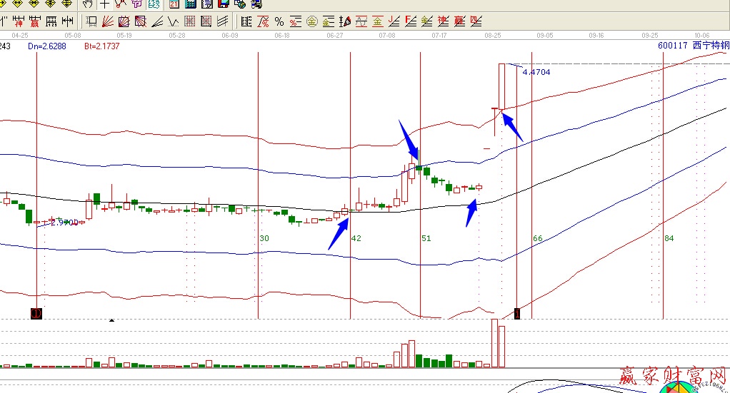 江恩理論,將江恩當年使用的測市工具用簡單、直觀的方法展現出來,適合更多的投資群體來使用。下面我們以600117為案例,展示時間工具和贏家特色工具極反通道共振的實戰效果。